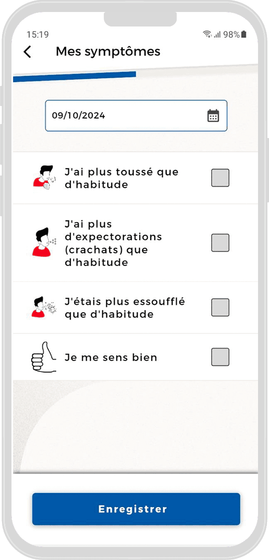 MYALPHA1 COMPASS est l'allié des patients atteints de DAAT pour les aider à mieux vivre au quotidien. Cette application propose des vidéos d’exercices physiques adaptés, un soutien pour planifier ses voyages, préparer ses consultations médicales, un suivi intuitif des symptômes, des rappels de rendez-vous et bien plus encore.